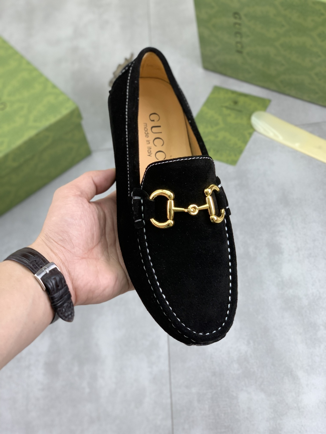 Dette sko er AAAAA 1: 1 kvalitet (super). Materialene som brukes er identiske med de opprinnelige. Gucci varemerke merker er utvisket til den autentiske. Bilder ta av selve sko, hva du får vil være 100% samme med våre bilder.