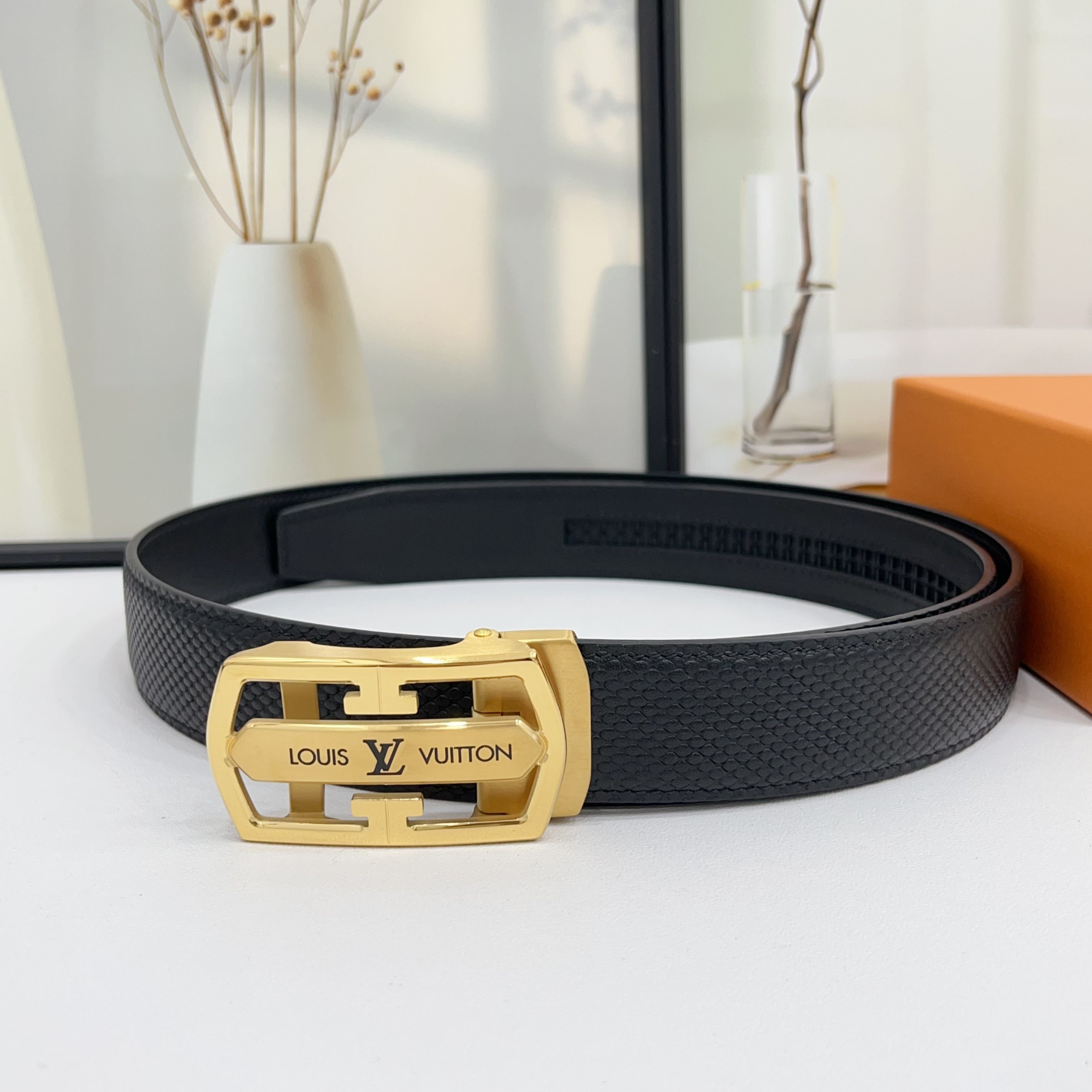Dette belte er AAAAA 1: 1 kvalitet (super). Materialene som brukes er identiske med de opprinnelige. Louis Vuitton varemerke merker er utvisket til den autentiske. Bilder ta av selve belte, hva du får vil være 100% samme med våre bilder.