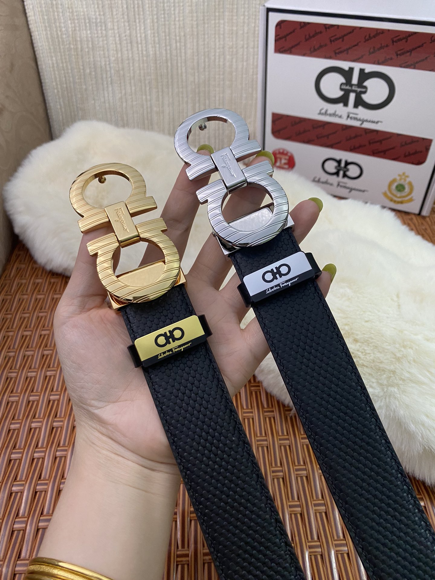 Dette belte er AAAAA 1: 1 kvalitet (super). Materialene som brukes er identiske med de opprinnelige. Salvatore Ferragamo varemerke merker er utvisket til den autentiske. Bilder ta av selve belte, hva du får vil være 100% samme med våre bilder.
