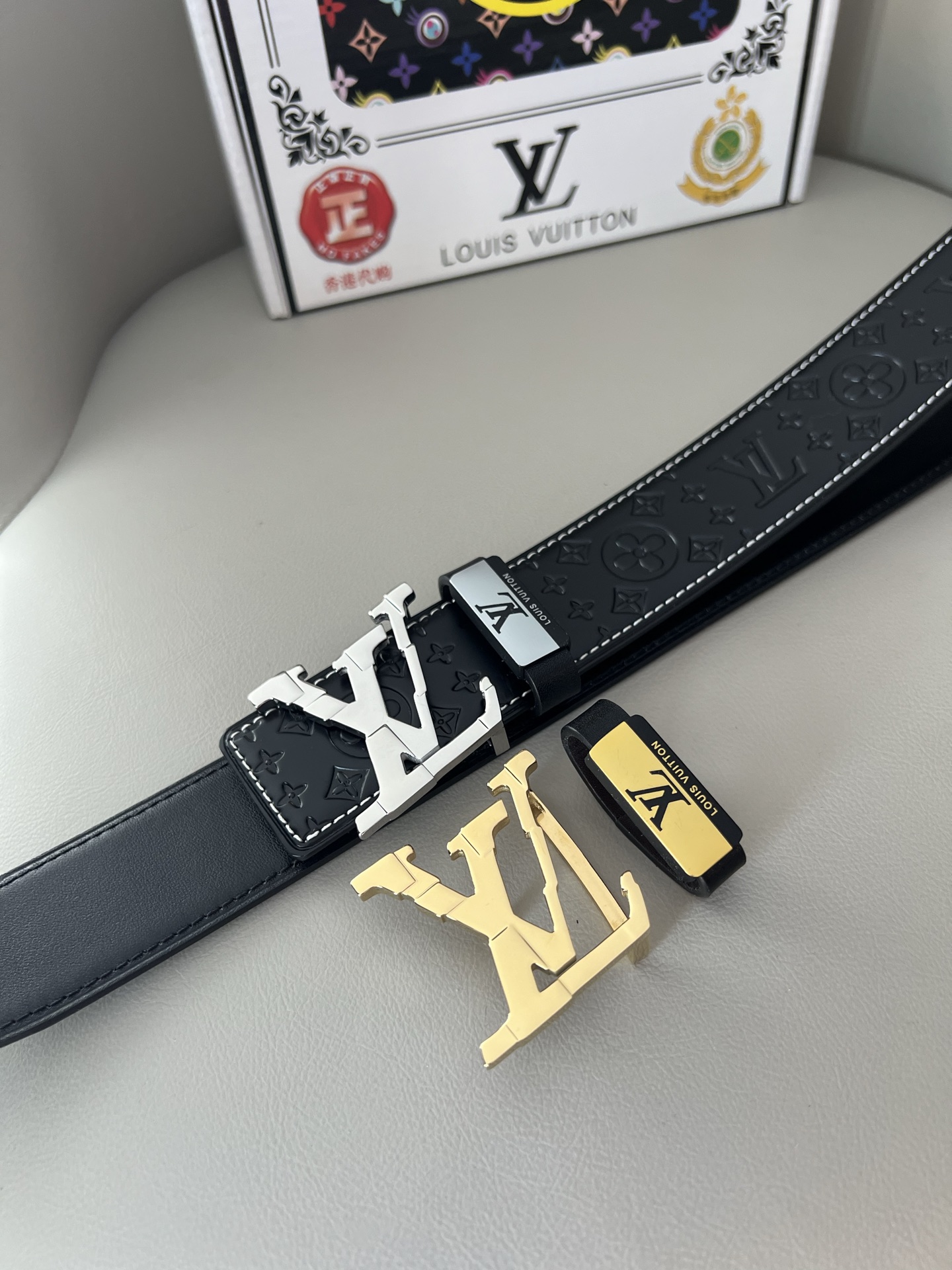 Dette belte er AAAAA 1: 1 kvalitet (super). Materialene som brukes er identiske med de opprinnelige. Louis Vuitton varemerke merker er utvisket til den autentiske. Bilder ta av selve belte, hva du får vil være 100% samme med våre bilder.
