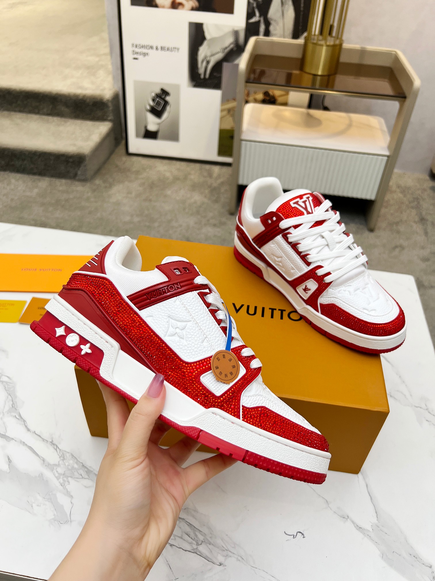 Dette sko er AAAAA 1: 1 kvalitet (super). Materialene som brukes er identiske med de opprinnelige. Louis Vuitton varemerke merker er utvisket til den autentiske. Bilder ta av selve sko, hva du får vil være 100% samme med våre bilder.