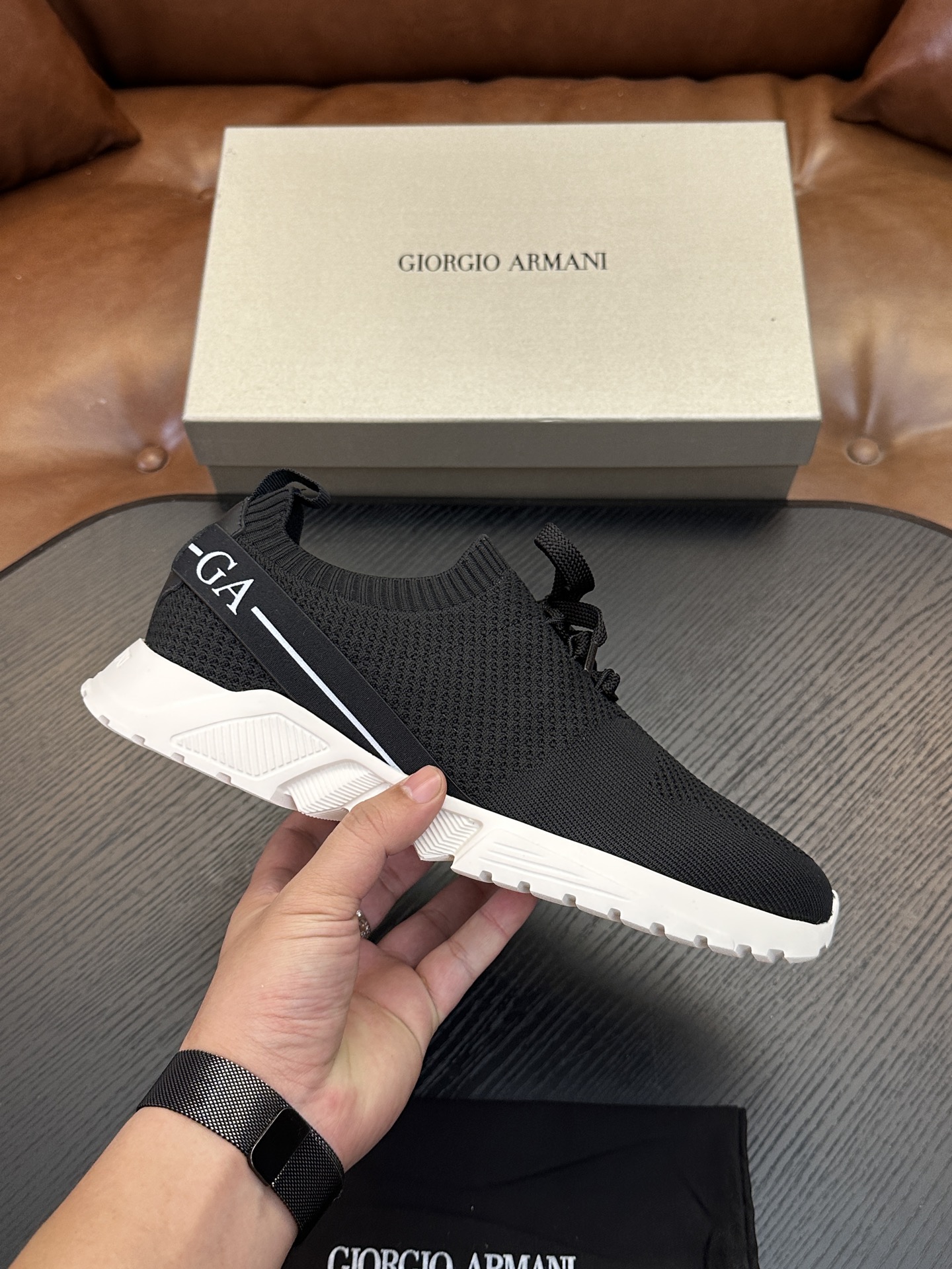Dette sko er AAAAA 1: 1 kvalitet (super). Materialene som brukes er identiske med de opprinnelige. Armani varemerke merker er utvisket til den autentiske. Bilder ta av selve sko, hva du får vil være 100% samme med våre bilder.