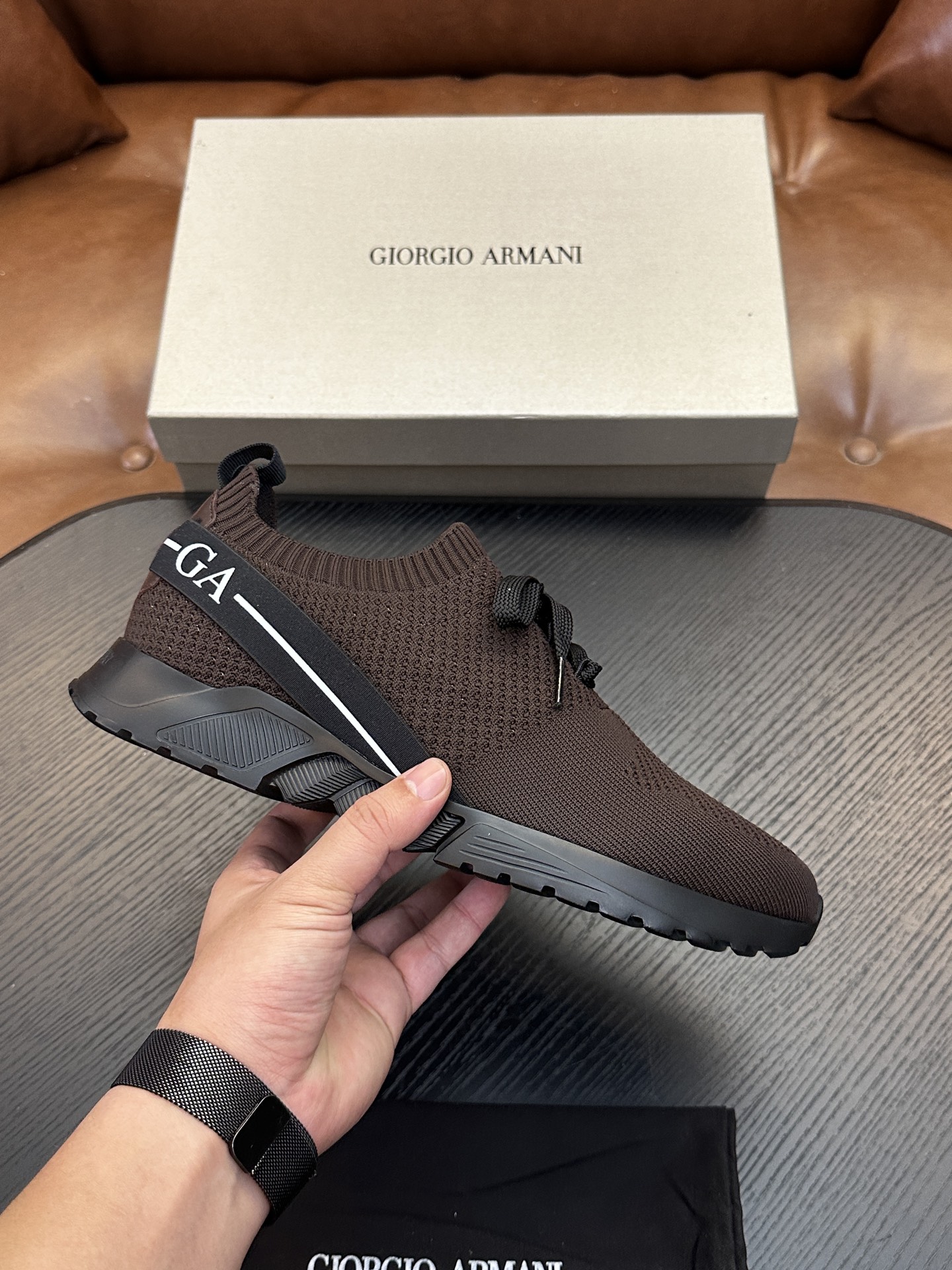 Dette sko er AAAAA 1: 1 kvalitet (super). Materialene som brukes er identiske med de opprinnelige. Armani varemerke merker er utvisket til den autentiske. Bilder ta av selve sko, hva du får vil være 100% samme med våre bilder.
