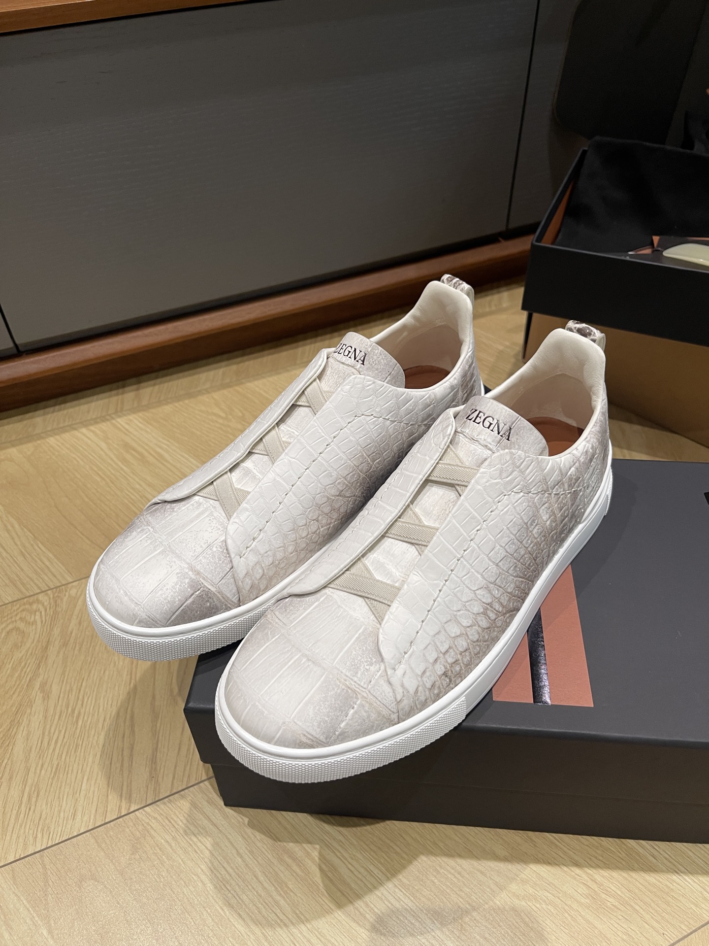 Dette sko er AAAAA 1: 1 kvalitet (super). Materialene som brukes er identiske med de opprinnelige. Zegna varemerke merker er utvisket til den autentiske. Bilder ta av selve sko, hva du får vil være 100% samme med våre bilder.